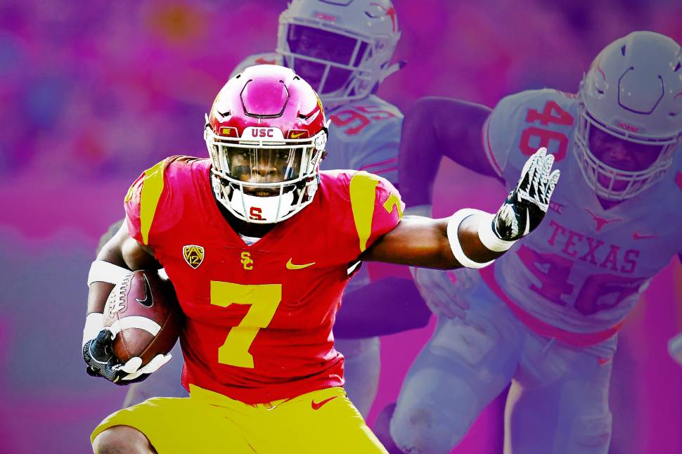 It’s a windy, 65-degree November day, chilly for Los Angeles. Students struggle around USC’s campus in puffer jackets, scarves and boots. Running back Stephen Carr, then a true freshman, walks into the team’s media room in a cardinal and gold Trojans T-shirt, sweatpants and slides.